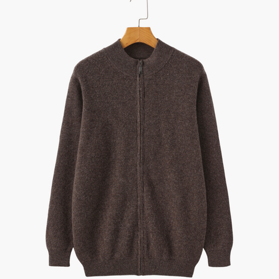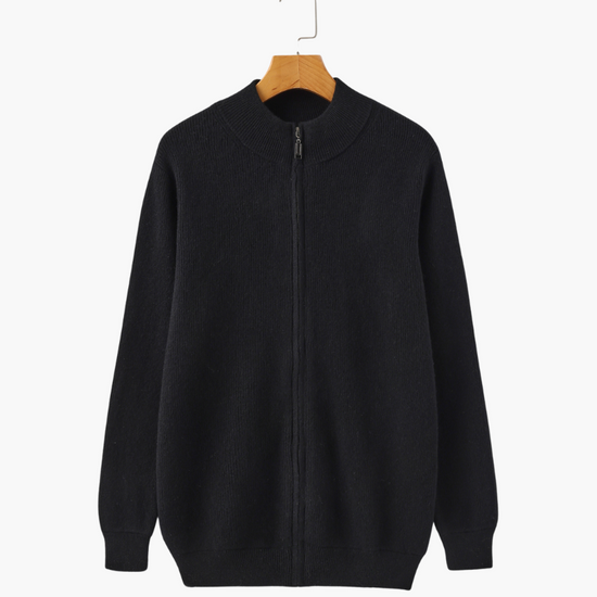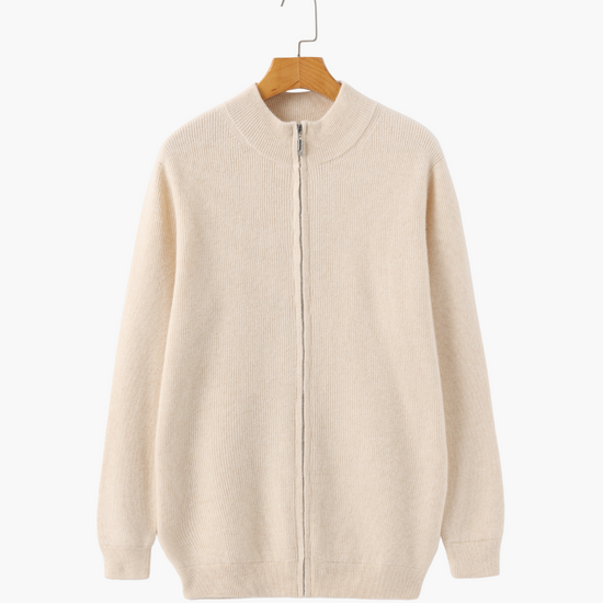 Soft knit cardigan designed with a clean full zip front and minimalist silhouette.