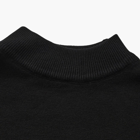 Minimalist knit sweater designed with a refined mock neckline and clean finish.
