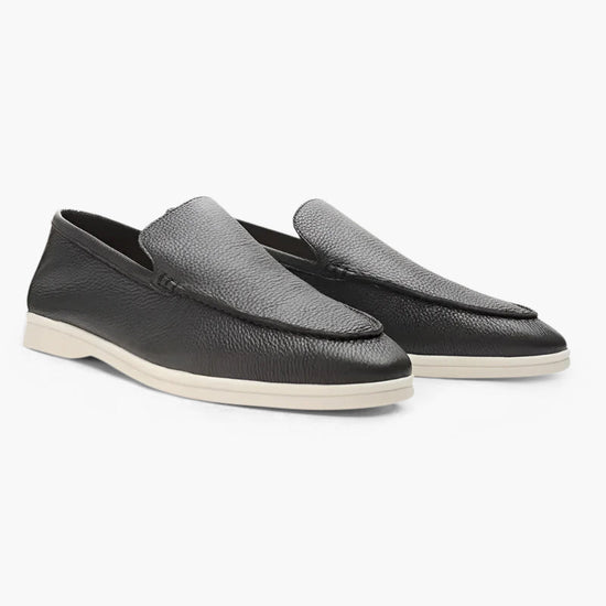 Premium textured leather loafers crafted with a sleek, minimalist silhouette.